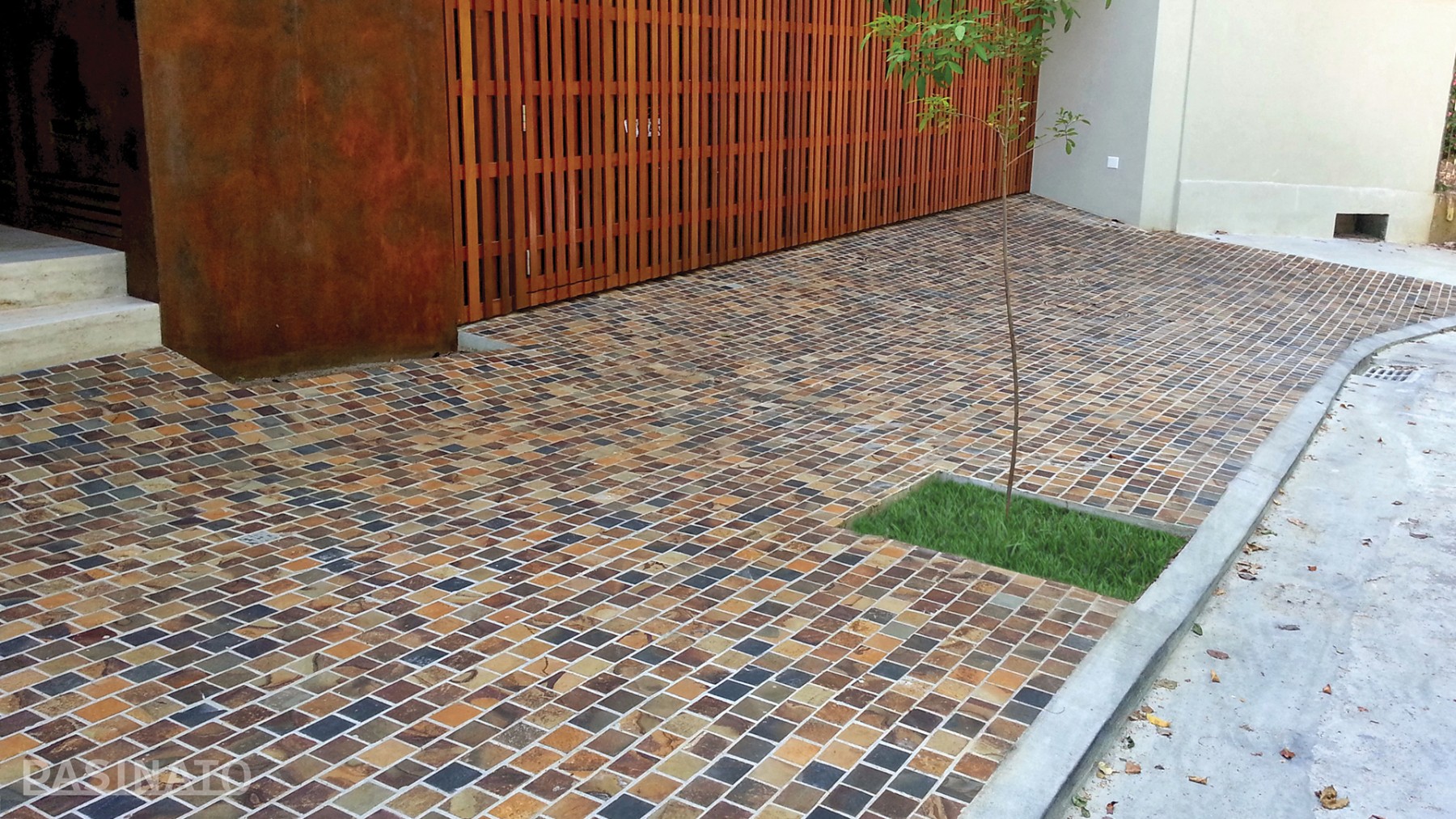 Classic Straight is a design stone mosaic on mesh to cover floors in different outdoor areas like sidewalks, cars access, terraces and walk areas.