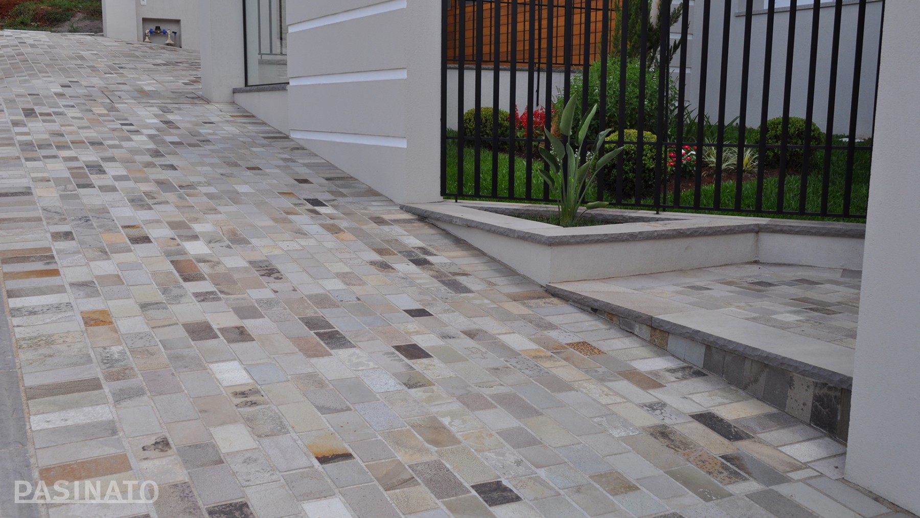 Classic Straight is a design stone mosaic on mesh to cover floors in different outdoor areas like sidewalks, cars access, terraces and walk areas.