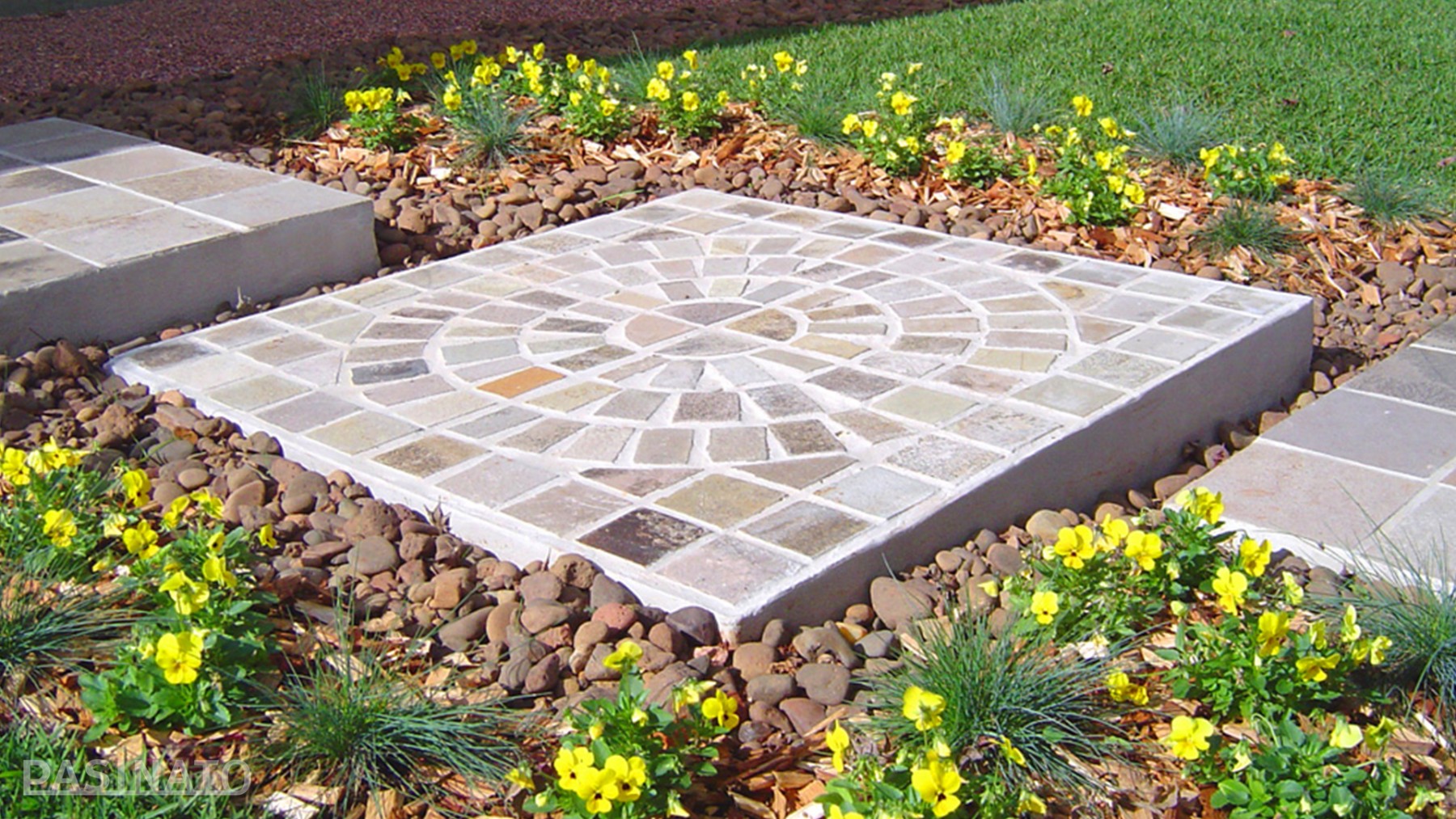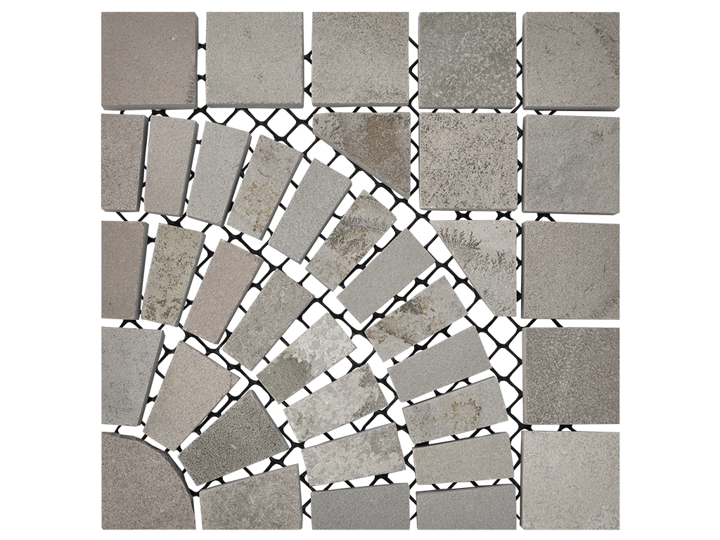 Square with Circle is a design stone mosaic on mesh to cover floors in different outdoor areas like sidewalks, cars access, terraces and walk areas.